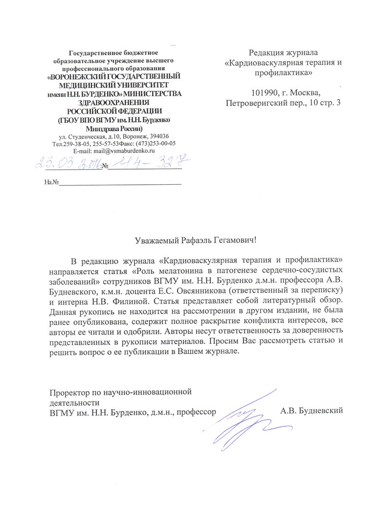 Будневский А.В., Овсянников Е.С., Филина Н.В. Роль мелатонина в патогенезе сердечно-сосудистых заболеваний. Кардиоваскулярная терапия и профилактика. 2016;15(5):97-101. https://doi.org/10.15829/1728-8800-2016-5-97-101